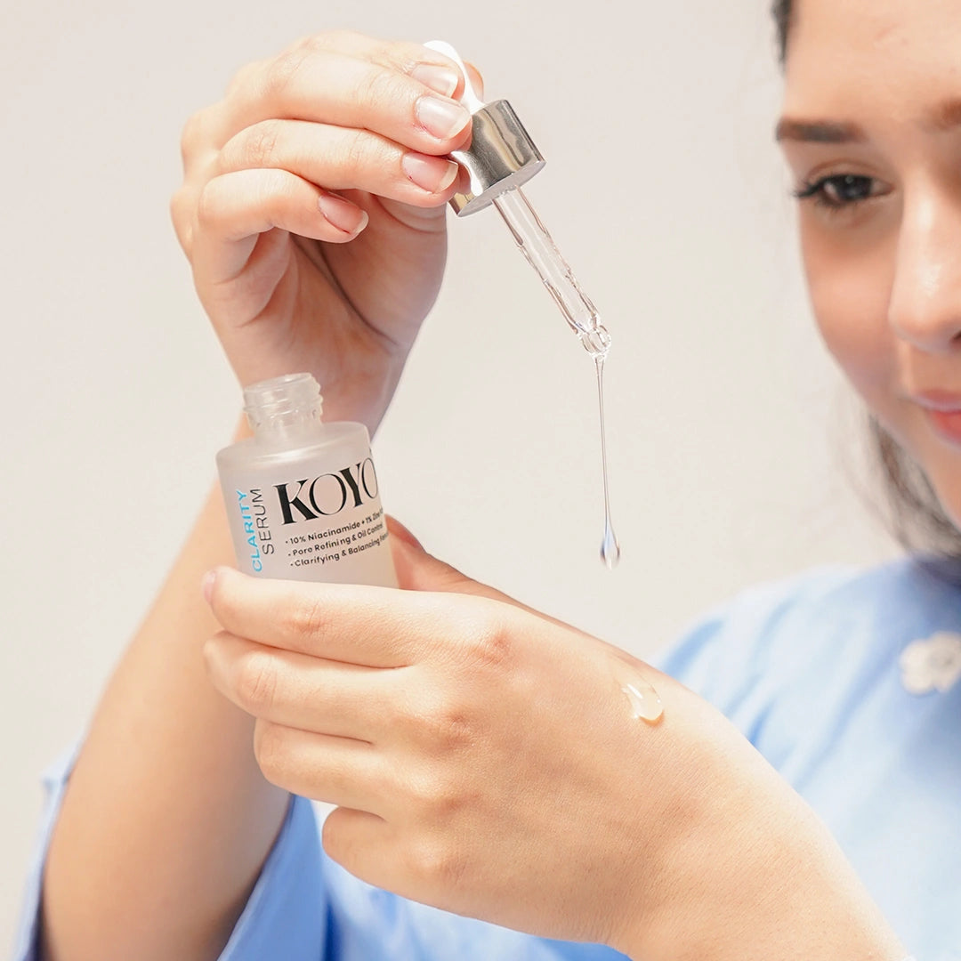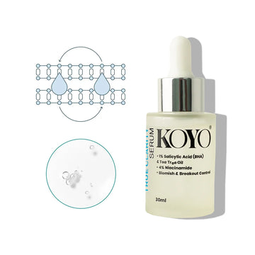 Discover skin that’s visibly clearer, calmer, and more balanced. KOYO True Clarity Serum harnesses a high-strength 10% Niacinamide complex to minimize pores, even tone, and strengthen your barrier. Zinc PCA at 1% works in tandem to regulate sebum production and soothe inflammation. A dual-weight Hyaluronic Acid system delivers deep and surface hydration, while Panthenol (Vitamin B5) And Allantoin calms irritation and supports repair. Ultra-light and fast-absorbing, this pH-balanced Formula preps skin for your next layer without stickiness or residue. Ideal for combination, oily or breakout-prone skin seeking a clear-skin boost.